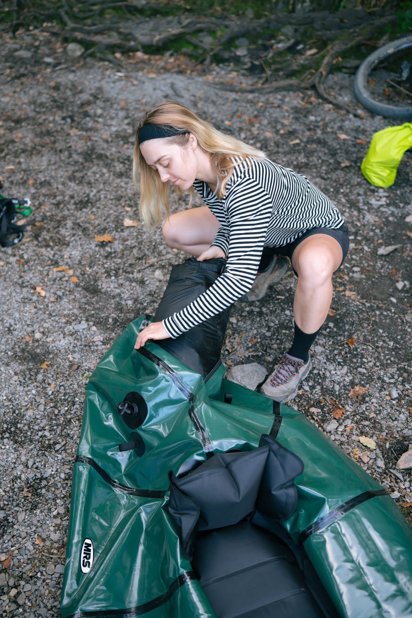 Most of the MRS range are “capable” of carrying a bike, with the exception of the ultra light range. The best models for carrying loads of gear would be the MRS Ponto (a great stable, simple, no-nonsense packraft), the MRS Microraft L (a fantastic all rounder with a great bikerafting reputation), the Microraft XL (like the Microraft L but with more room), and for tandems, the MRS Barracuda R2.